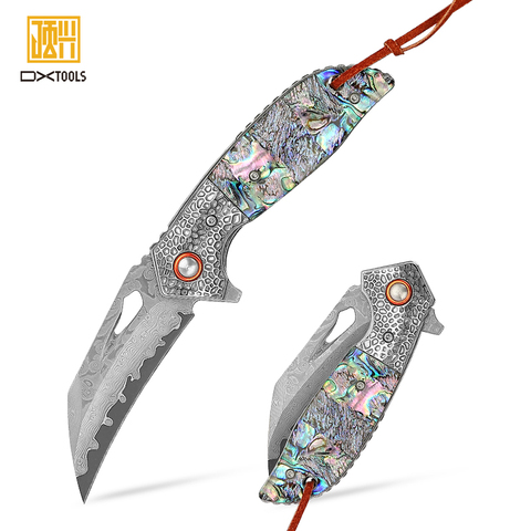 Outdoor Camping Folding Design High End Damasco Pocket Knife Com Exquisite Shell Handle Damasco Pocket Knife